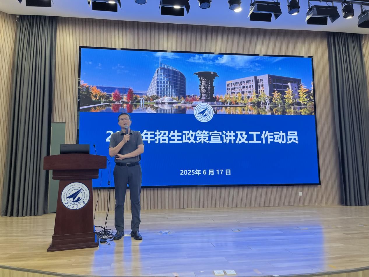 最后,院长常洪龙对即将开展的学校招生工作进行了全面动员部署,并号召全体教职工要紧紧围绕学校“127”发展目标,持续聚焦中期目标任务,以更加昂扬的斗志和务实的作风,在提升人才培养质量、加强师资队伍建设、推动科研创新等方面接续奋斗,为学院高质量发展注入新动能,共同谱写学校事业发展新篇章。
