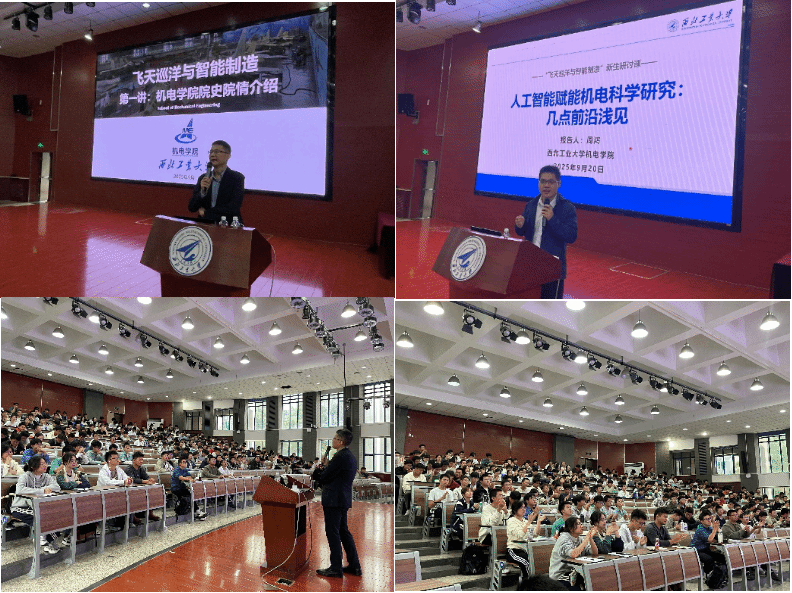 国家级青年人才周鸿教授则以“人工智能赋能机电科学研究”为题,为新生带来了一场涵盖人工智能的历史、现在与未来的科普讲座。他指出,当前正处在人工智能发展历程中的黄金时代,数据、算法与算力三大核心驱动力正推动科学研究范式发生深刻变革。周教授结合具体案例,生动展示人工智能在系统优化、智能制造等领域的创新应用,激发同学们对智能科技与机电工程实践结合的兴趣与思考。