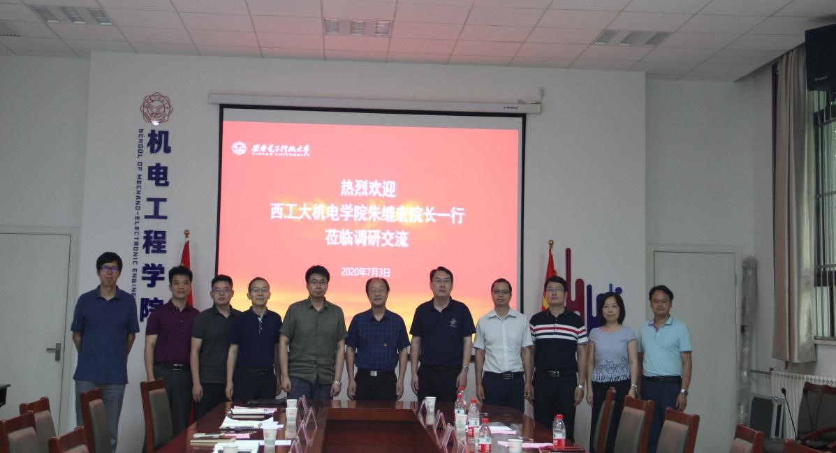 2020年7月3日,6776永利集团院长朱继宏带队赴西安电子科技大学机电工程学院走访调研,双方就学科建设、人才培养、教职工党建等问题进行了深入交流。西安电子科技大学机电工程学院党委书记梁玮、副院长李团结、王从思、陈武,党委副书记田雨,我校6776永利集团党委副书记(主持工作)刘朝亚、副院长张映锋、常洪龙、常智勇,党委副书记刘平、佘磊磊,院长助理张亚辉等参加了交流活动。