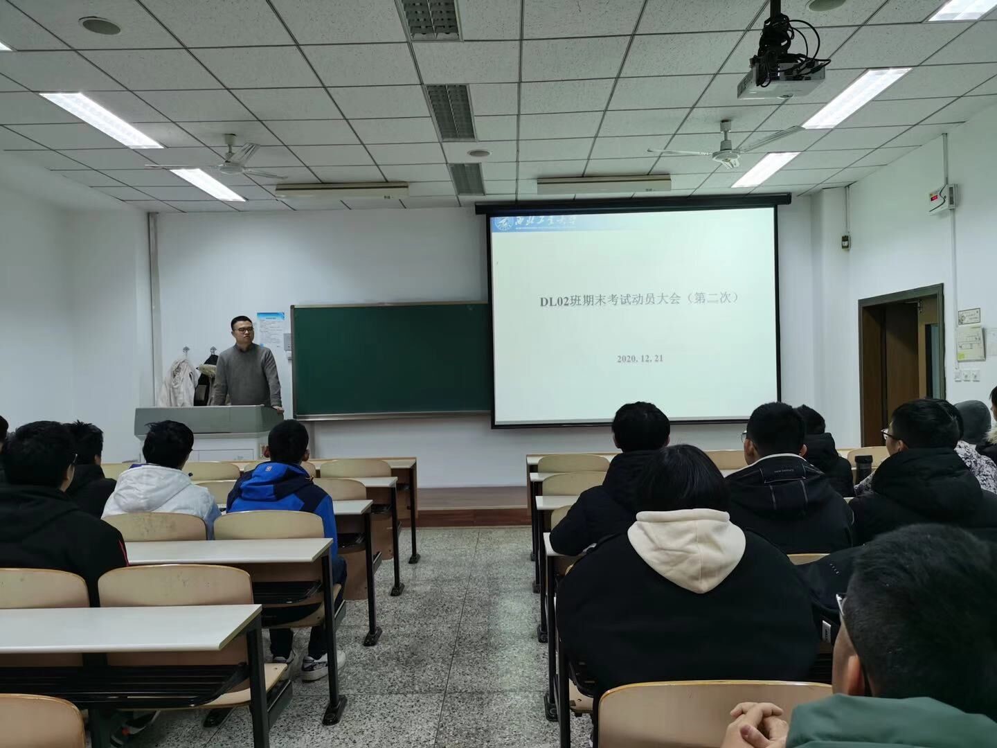 1221日,DL042002班在教学西楼B406召开期末考试动员大会(第二次),会议由班主任老师侯宇戡主持。