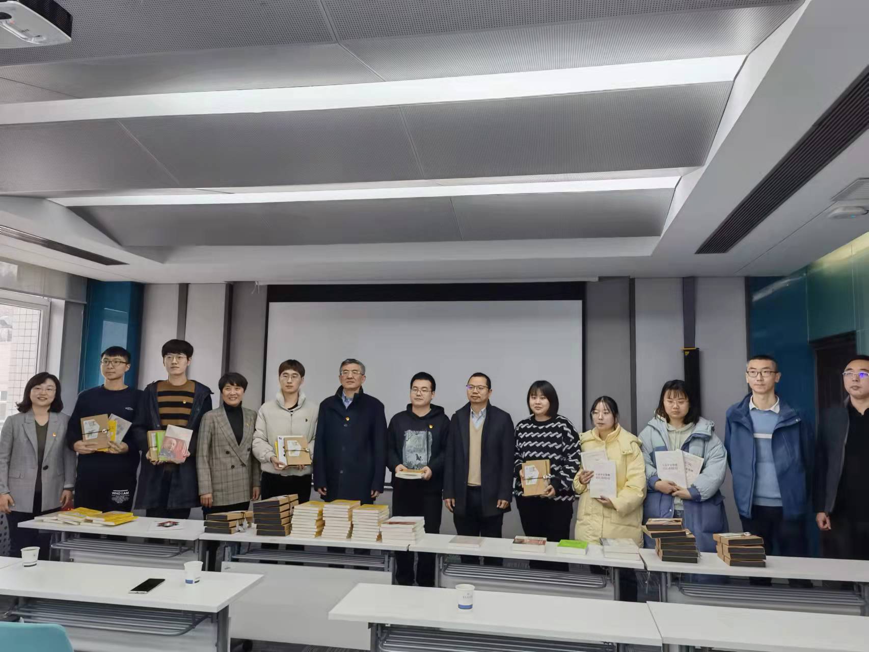 之后,张映锋、苑伟政和团队部分教师代表为学生赠送相关图书并合影留念。最后,研究生申若冰同学代表学生发言,她表示作为西工大的学生,将秉承“天工开物,飞天巡洋,智能制造,机电领航”学院精神,继续传承一代代西工大人无私奉献、不懈拼搏的基因,在祖国的大地上继续续写“西工大现象”。