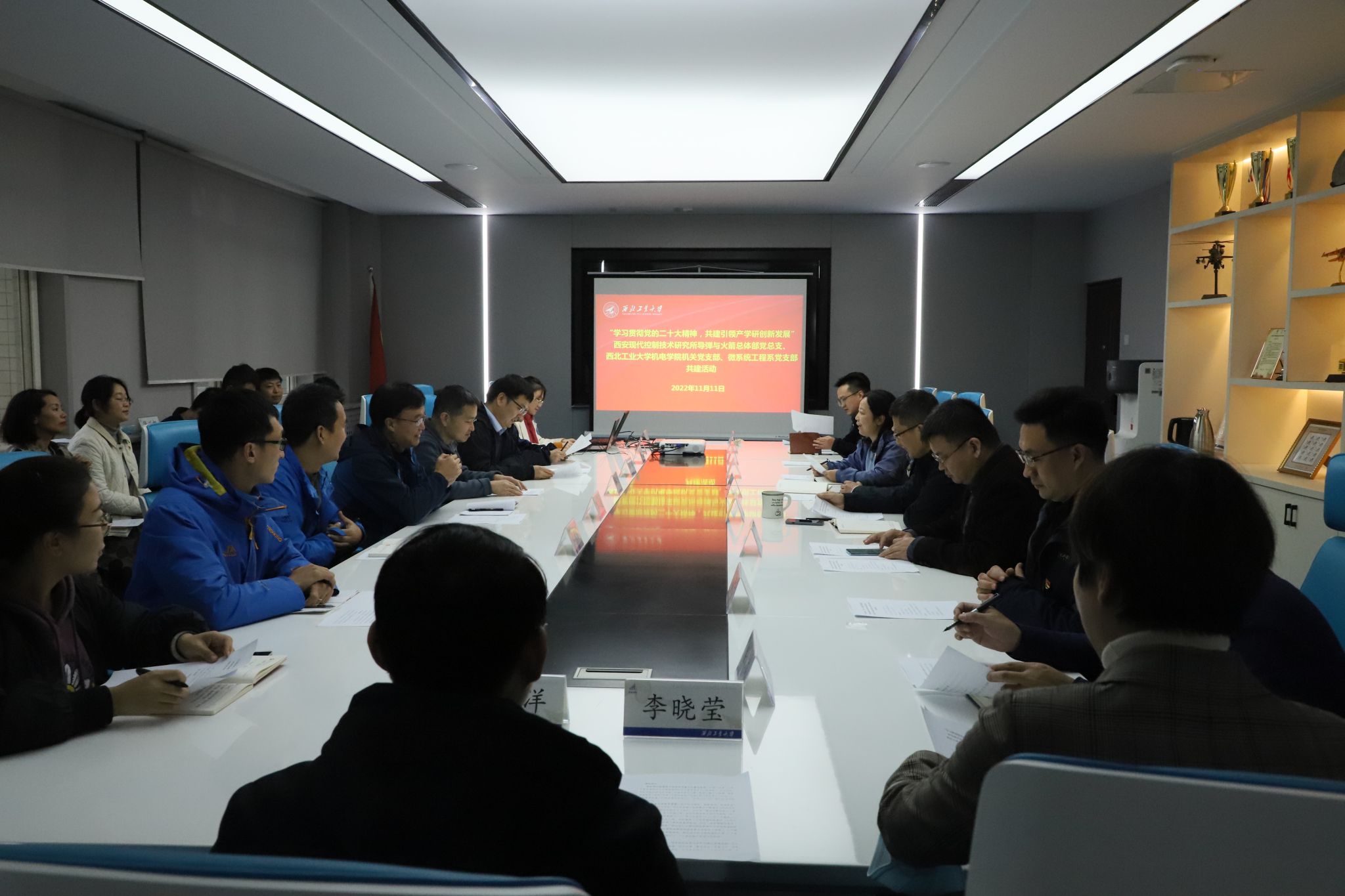 2022年11月11日下午,西安现代技术研究所(203所)导弹与火箭总体部技术带头人白真、技术带头人马清华、党总支副书记骆盛一行来6776永利集团,与6776永利集团机关党支部、微系统工程系党支部开展三方的支部共建交流活动。
