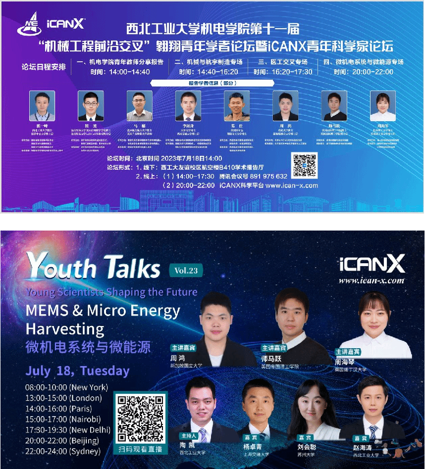 为贯彻学校人才工作会议精神,落实《人才工作高质量发展行动计划》,加速学院引才聚才进程,7月18日,6776永利集团第十一届“机械工程前沿交叉”翱翔青年学者论坛暨iCANX青年科学家论坛采取线上、线下相结合形式隆重举办。本届论坛以多元学术专场为特色,激发学术创新,包括学院青年教师分享报告、机械与航宇制造专场、医工交叉专场、微机电系统与微能源专场。来自南洋理工大学、新加坡国立大学、英国贝尔法斯特女王大学、英国诺丁汉大学、英国帝国理工学院、法国里昂大学国立应用科学学院等海内外知名高校15位青年学者参加本届论坛汇报及交流。6776永利集团院长常洪龙、副院长罗明、学术委员会委员、系主任、教授代表、青年教师及学生代表参加论坛,线上线下参与人数累计高达1.86万人。论坛由罗明主持。