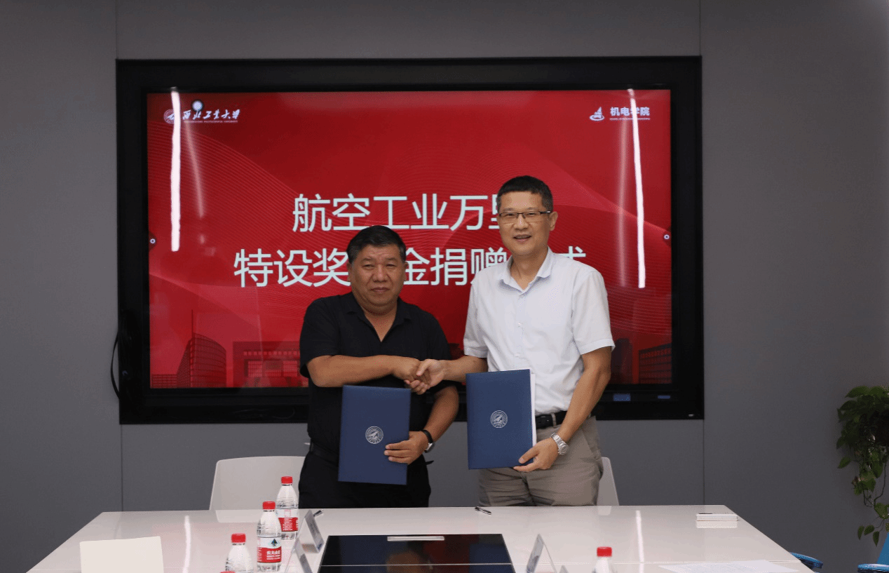 接下来,双方代表进行了捐赠协议的签署。航空工业万里愿意向我院捐赠奖学金,以支持优秀学子的学习和成长。这一举措充分展示了航空工业万里对教育事业的关心和支持,也将为我院的学生提供更多的机会和资源。