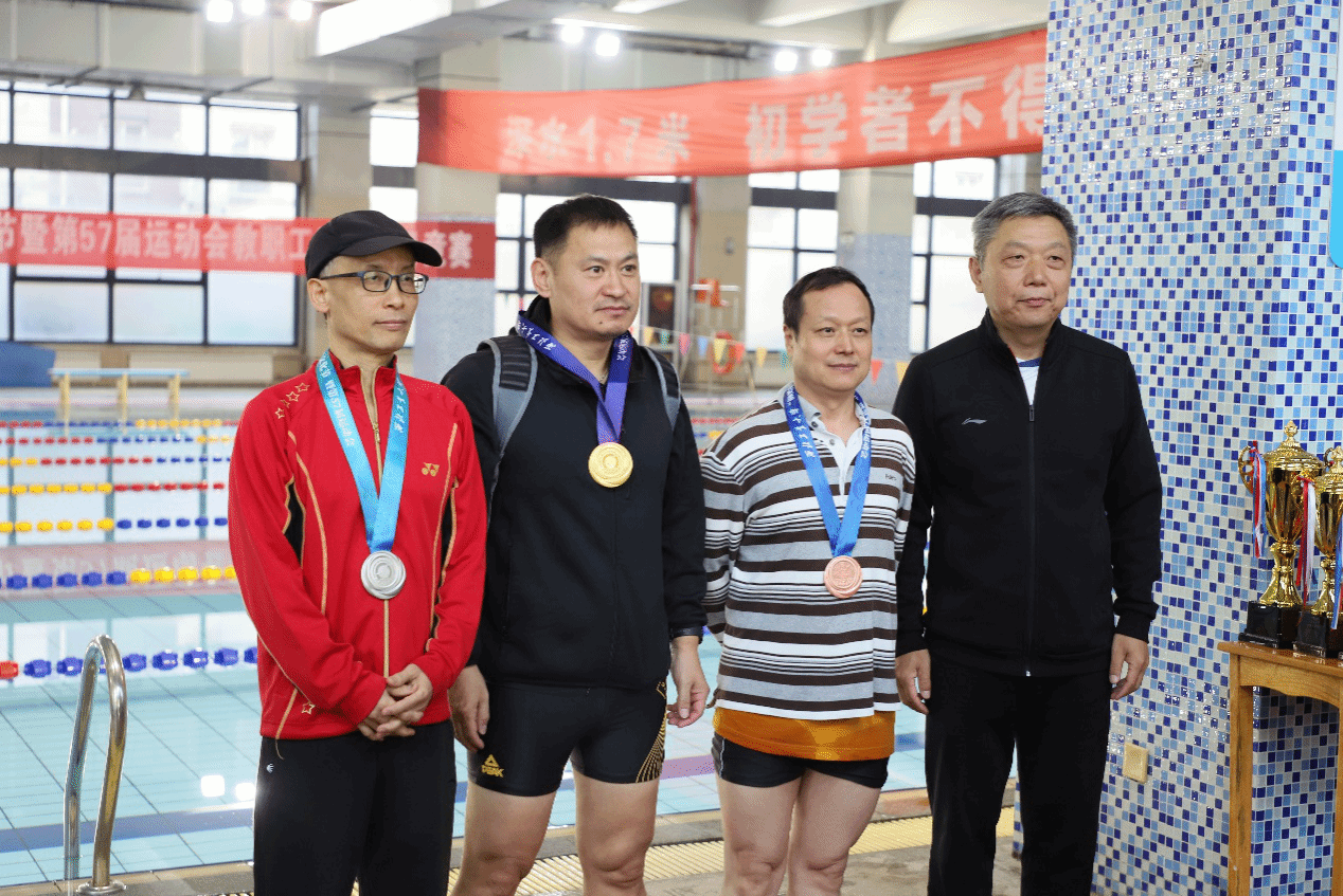 在男子45岁以上组50米自由泳项目中,6776永利集团教职工代表队展现出了出色的实力和技巧。经过紧张而激烈的比拼,我院选手李启鹏老师和汤军社老师成功夺得了第二名和第三名的好成绩,彰显了他们的卓越水平和执着追求。