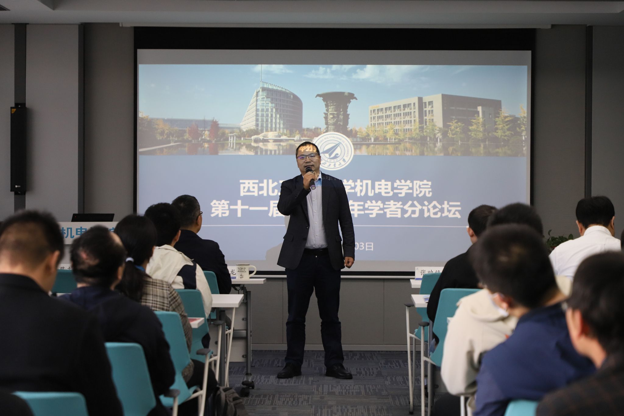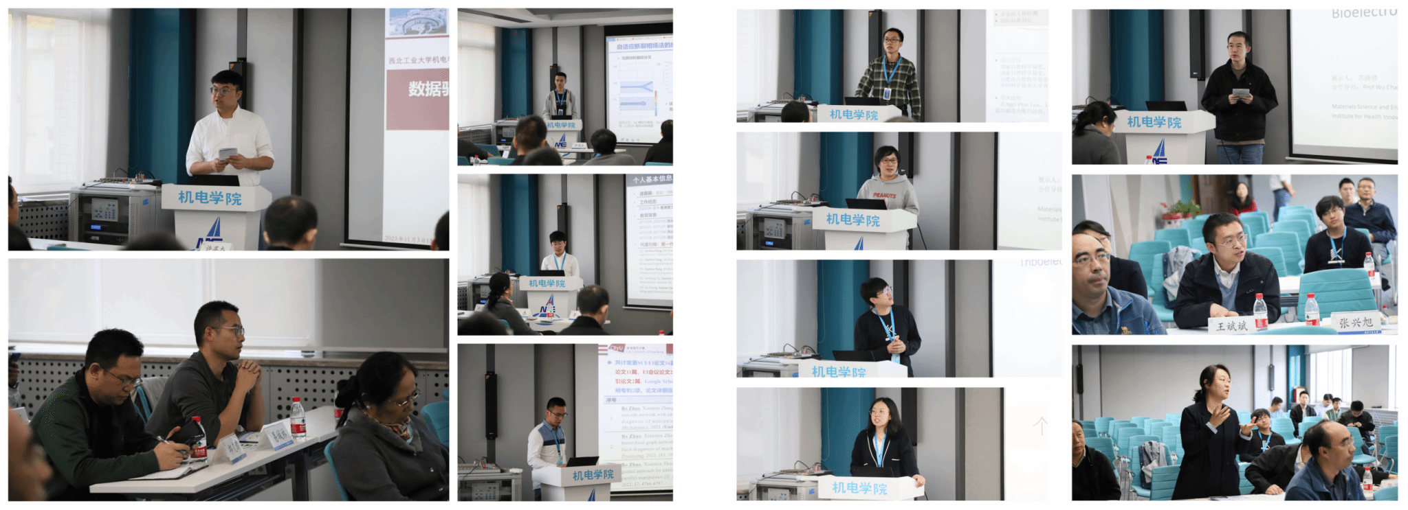 为了与青年学者交流更加充分和深入,论坛分为航宇和微纳技术、机械设计与制造、智能制造与人机设计三个专场,分别在航空楼B410室、B412室、B416室举行。青年学者以PPT形式进行了学术汇报,向与会人员展示了他们在学术领域的创新和突破。每位学者汇报后,教师们积极提出问题、给予反馈,并与青年学者就研究方向、方法论及未来发展方向进行了深入的讨论。