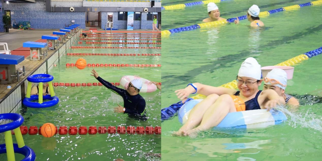 本次运动会采取“任务闯关”方式进行,游戏场地为每组一条50米泳道,每组需从泳道起点至终点依次完成水中捞月、水中健步走接力、水中宝宝接力、水中投篮四个任务,并最终触碰终点铃铛结束游戏,用时最少的组获胜。