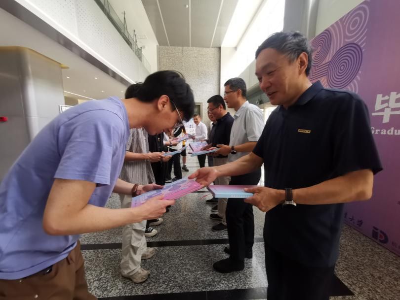 在开幕式中,常洪龙院长表达了对毕业生的美好祝愿,余隋怀教授希望毕业生们在走上新的人生旅途前能静心思考在大学中收获了什么,以期在未来走得更远。随后,院长及工业设计系教授们为毕业生颁赠“2024届毕业设计作品集——逐光”。