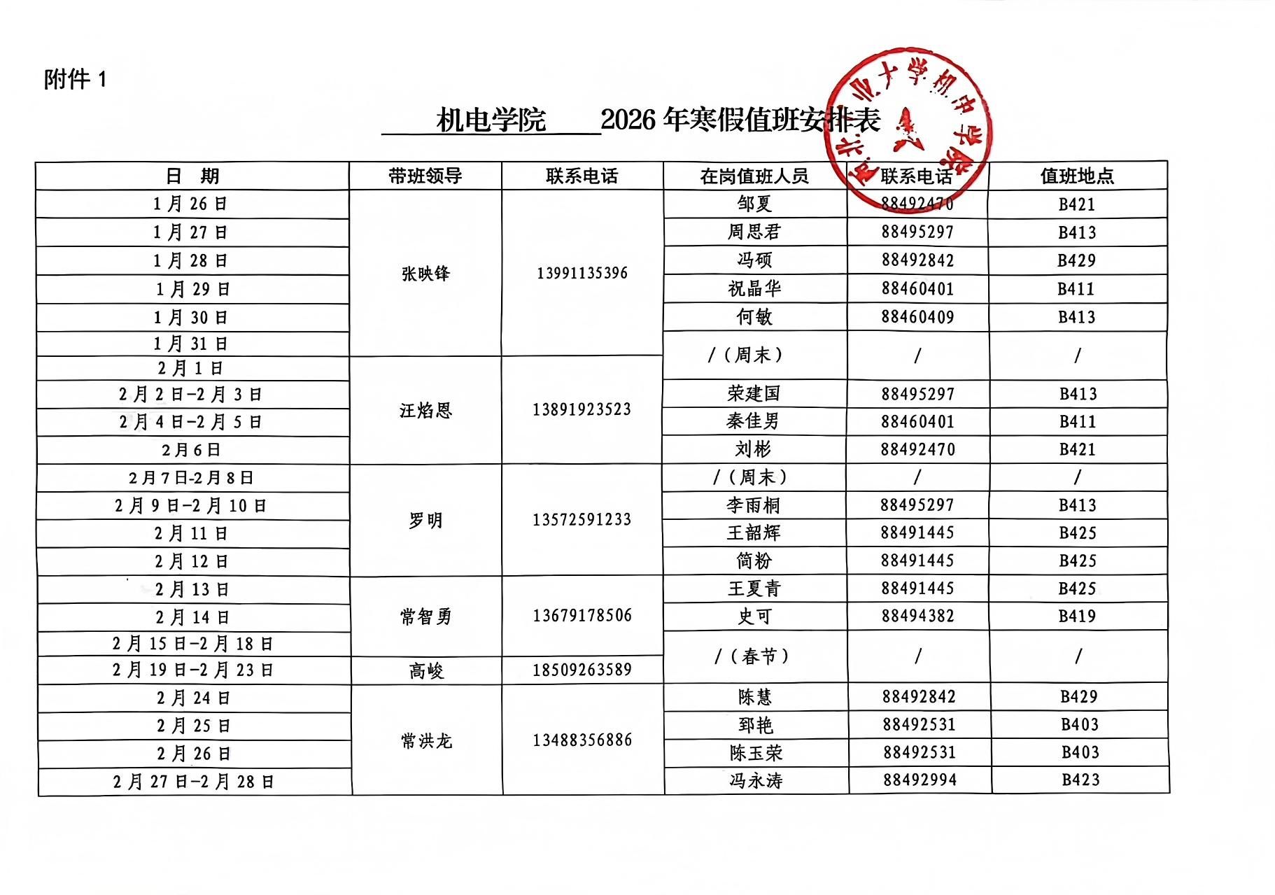 6776永利集团2026年寒假值班安排