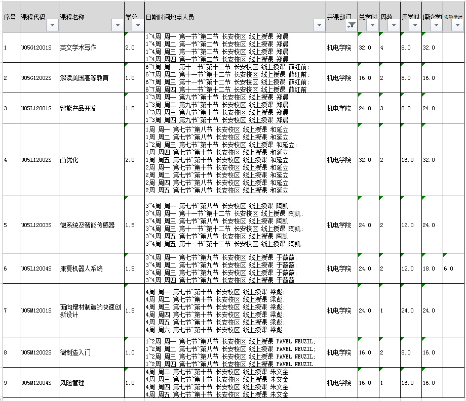 专业选修课程 U05M12002S