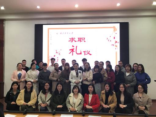首先马老师对于求职礼仪的知识与重要性进行了讲解,并且带领大家做一些小游戏以及真实还原面试现场情形,同学们认真听讲,积极参与其中,在游戏与模拟情形中学习礼仪,感受礼仪的魅力。