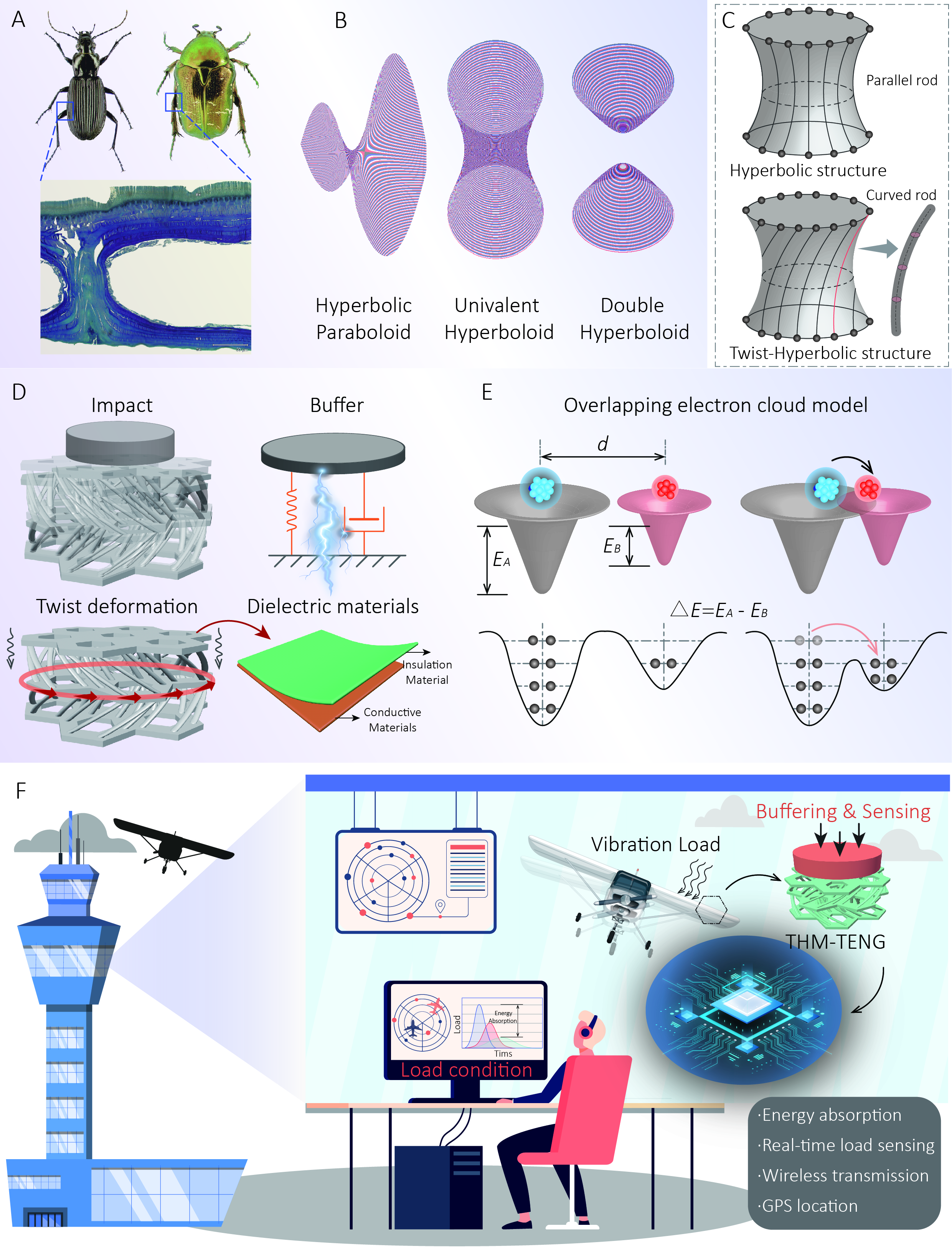 近日,6776永利集团齐乐华教授团队在兼顾冲击防护与自供能传感的力学超结构方面的研究取得新进展。相关成果《Bioinspired Twist-Hyperbolic Metamaterial for Impact Buffering and Self-Powered Real-Time Sensing in UAVs》发表在Science 子刊《Science Advances》上。6776永利集团晁许江副教授为第一作者,柔电院梁飞副教授、齐乐华教授和中科院王中林教授为通讯作者。