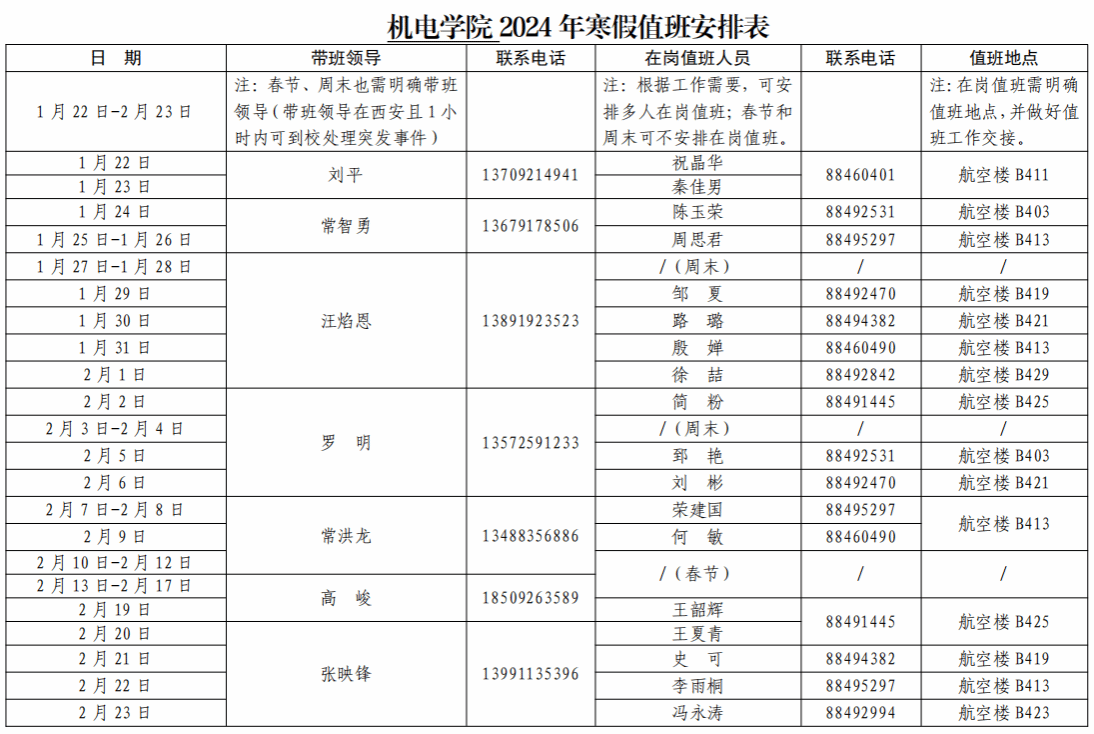 6776永利集团2024年寒假值班安排