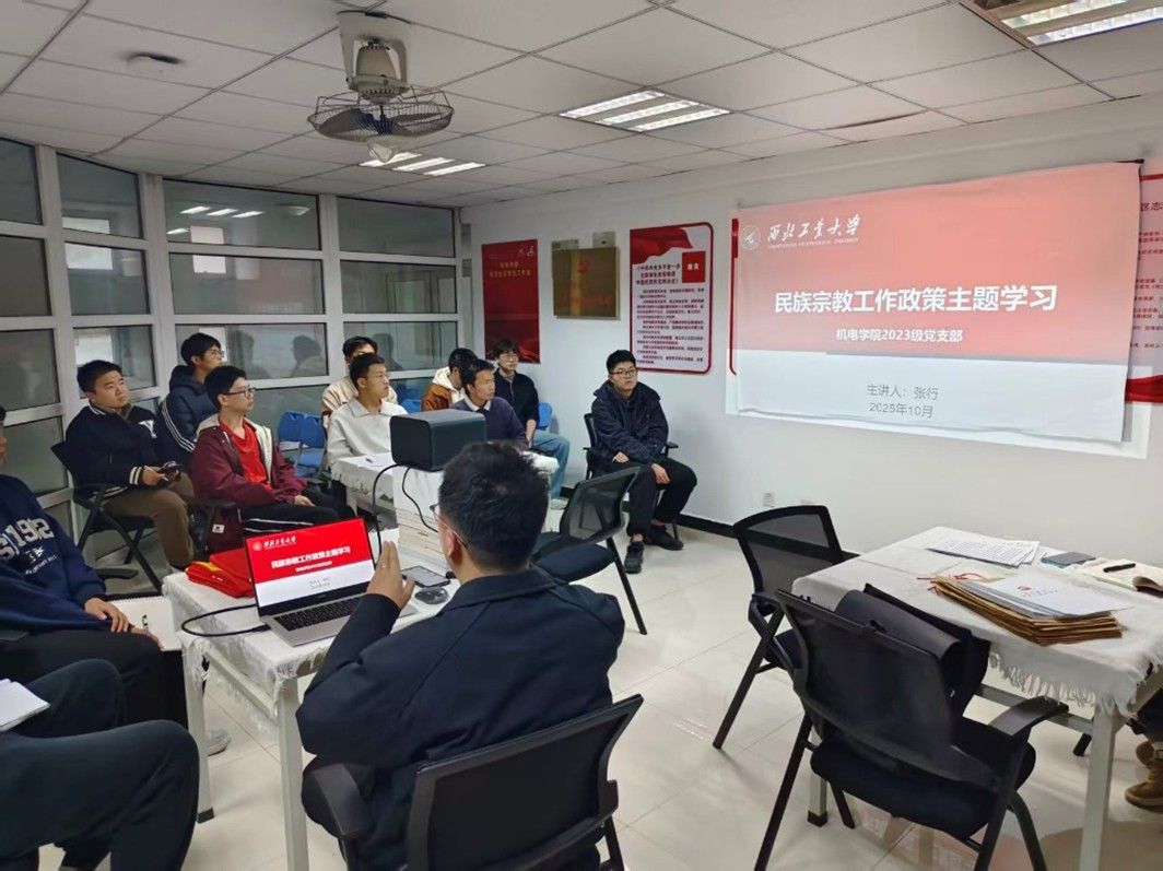 接着,会议转到民族宗教工作政策主题学习环节。张行首先介绍了世界三大宗教的基本分支情况,明确我国依法承认的五大宗教。同时,他围绕宗教信仰自由这一核心政策,阐述了宗教信仰自由的适用范围与行为边界,特别强调党员、共青团员必须严格遵守纪律要求,并详细讲述了一些校内禁止的宗教相关行为。
