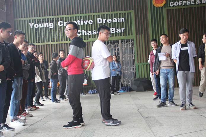 为增进诸位同学之间的相互了解,研会为本次活动设计了四个团体合作游戏:珠行万里、身不由己、群龙取水、双龙戏珠。到场的同学以8人为一组来完成整个游戏流程。首先进行的是珠行万里。队员将手中的U型槽进行拼合以达到使兵乓球通过轨道移动到二十米外的小桶中。比赛途中,队首的同学需要快速移动到队尾,以保证轨道的连续性。以这项团体特征极为明显的游戏开局,极大地调动了同学们参与活动的热情。