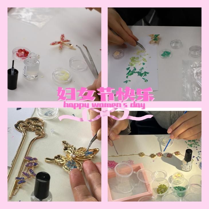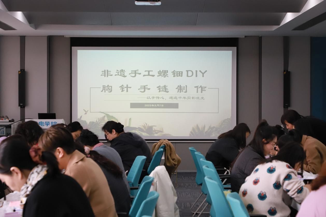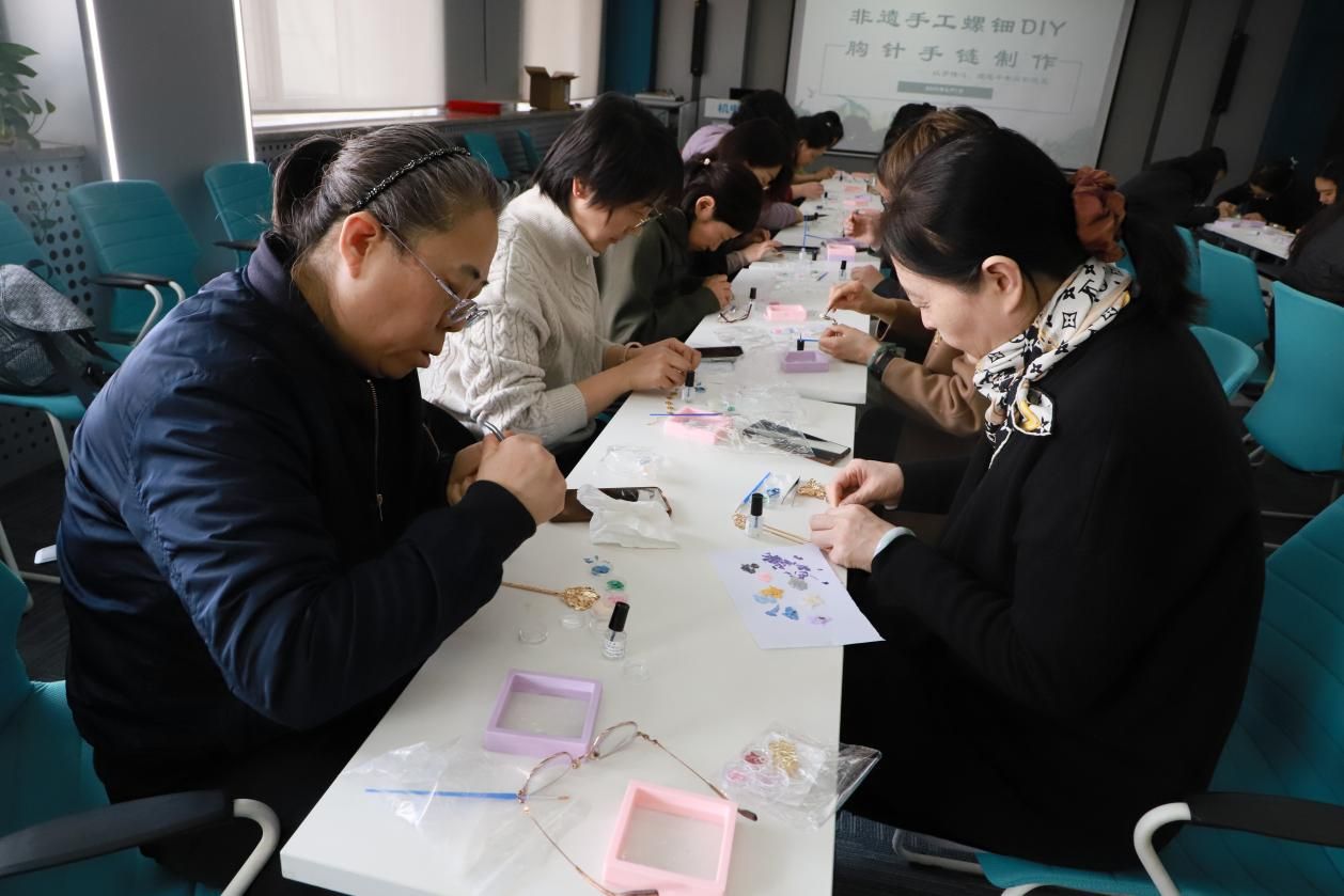 3月7日,6776永利集团工会精心策划"以手传心,邂逅千年贝影流光"主题庆祝活动,为女教职工送上别样节日祝福。在B410教室内,30余名女教师化身"非遗传承人",认真制作螺钿胸针手链。