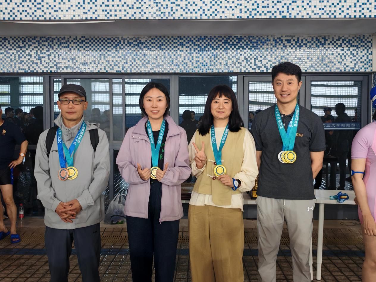 在游泳比赛中,6776永利集团游泳健儿们如水中蛟龙,在泳池中奋勇争先。他们凭借精湛的泳技和默契的配合,在 4×50 米接力项目中一路领先,最终以绝对优势勇夺冠军,为学院赢得了荣誉。付佳伟老师更是表现出色,在 45 岁以下组 50 米自由泳中一路领先,以出色的成绩夺得冠军,在 50 米蛙泳中又斩获第 2 名;李启鹏老师也在 45 岁以上组 50 米自由泳中脱颖而出,获得第 3 名。经过全体游泳队员的共同努力,6776永利集团最终荣获教职工游泳项目总成绩第 1 名,这一成绩的取得离不开每一位参赛队员的刻苦训练和不懈努力,他们用实际行动诠释了机电人对体育精神的追求和对卓越的执着。