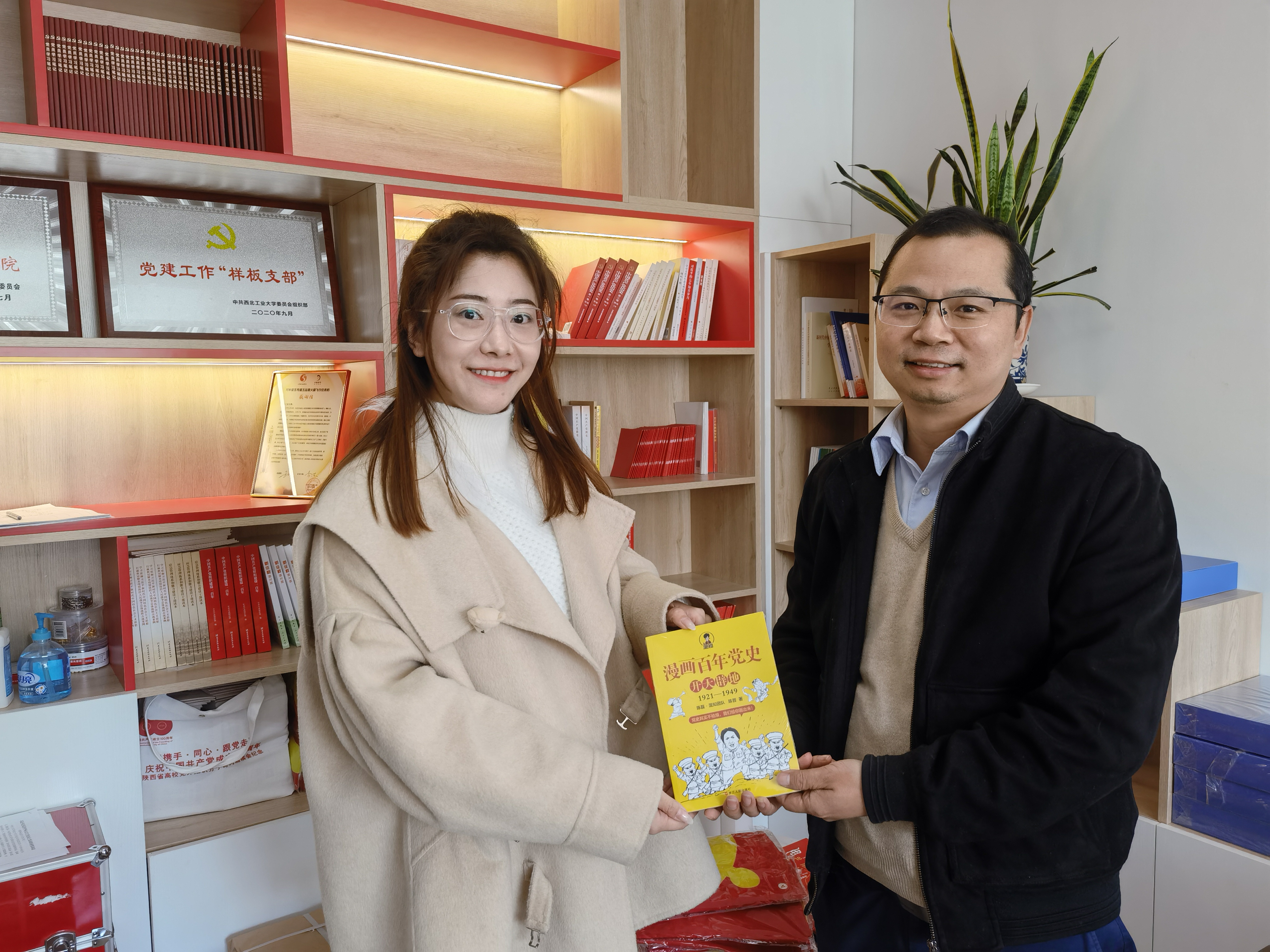 为推动党史学习教育走深走实,深入推进“我为群众办实事”实践活动,营造浓厚的党史学习氛围,6776永利集团党委及工会共同开展“赠书促学习·书香润初心”主题系列活动,为学院师生发放由工业设计系毕业生陈磊编著的《漫画百年党史》党史学习书籍,并受到师生广泛好评。