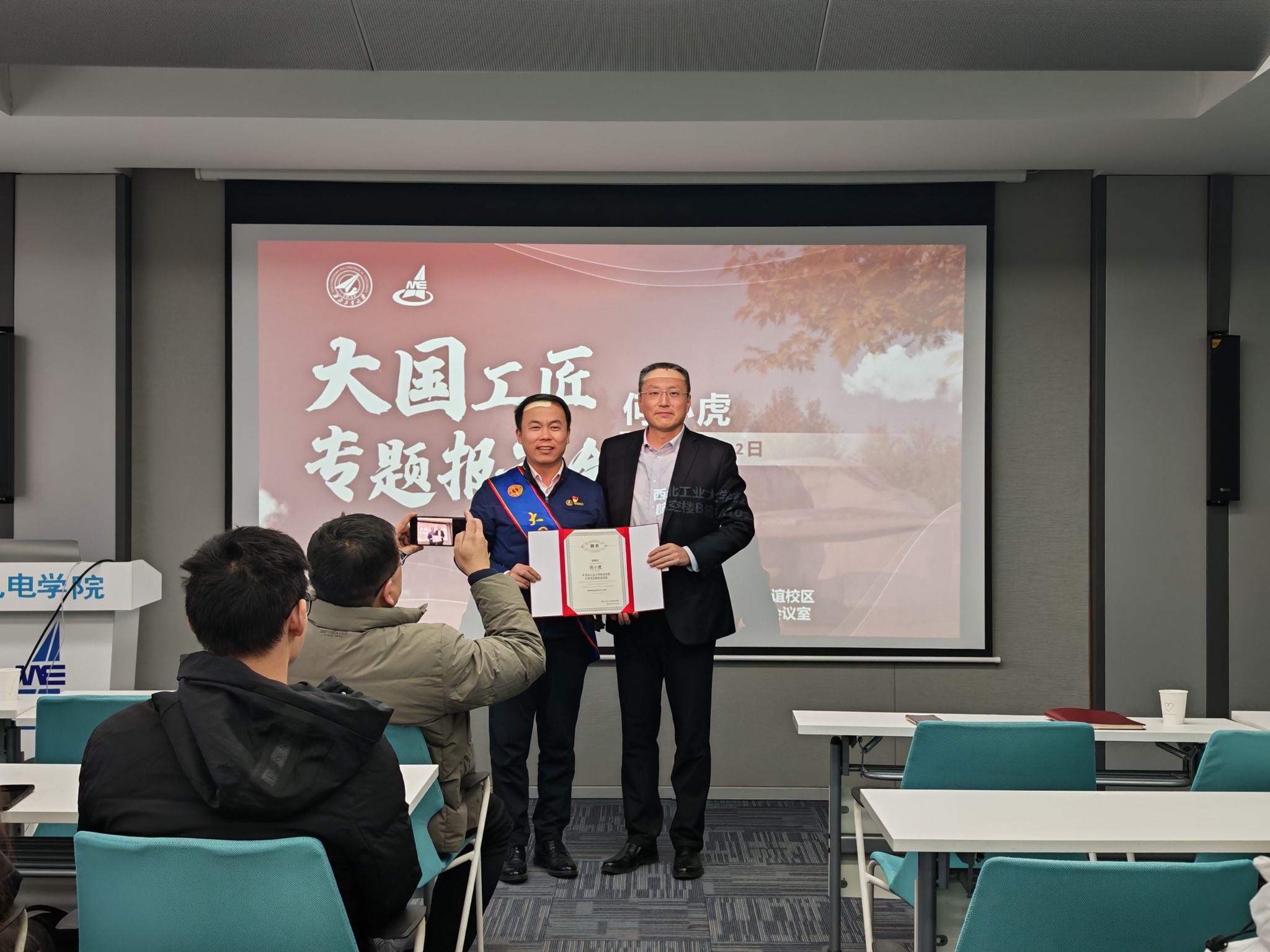 常洪龙院长为“大国工匠”何小虎颁发yl6776永利集团本科主讲教师聘书。他表示,面向制造强国、发展新质生产力对“总师型”人才的迫切需求,6776永利集团打造“中国飞行器总制造师的摇篮”这一育人品牌备受认可,而提升智能制造人才的培养质量是学院发展的关键部分。能够拥有一线制造经验丰富的“大国工匠”为学生授课专业知识,将“机械制造”与“工业美学”深度融合,是高效的、创新的教学理念和育人模式,为学院培养更多“总师型”拔尖智能制造人才提质增效。