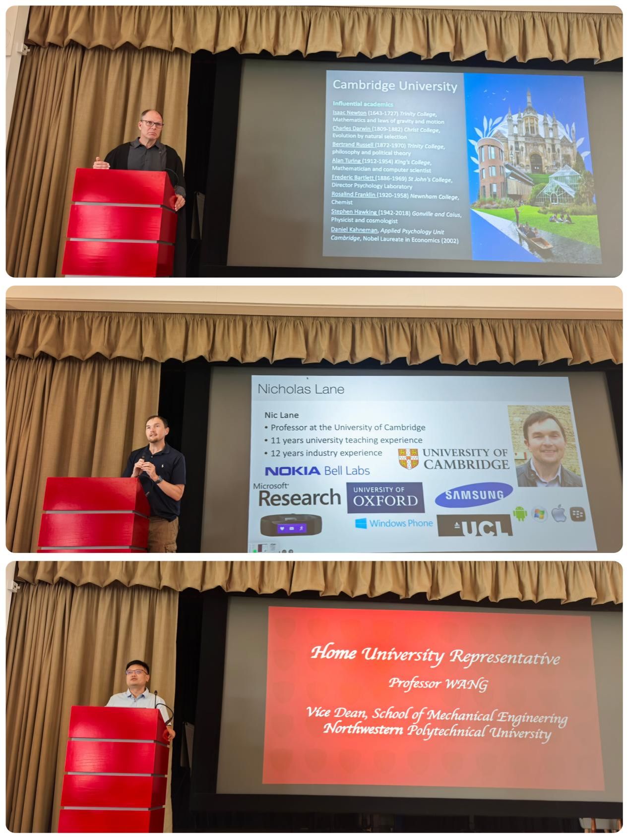 结束牛津的行程后,代表团奔赴另一学术圣地——剑桥大学。开业典礼上,剑桥大学Martin Vestergaard和Nicholas Lane教授分别介绍了剑桥大学的悠久历史及深度学习的相关知识。6776永利集团汪焰恩副院长代表致辞。