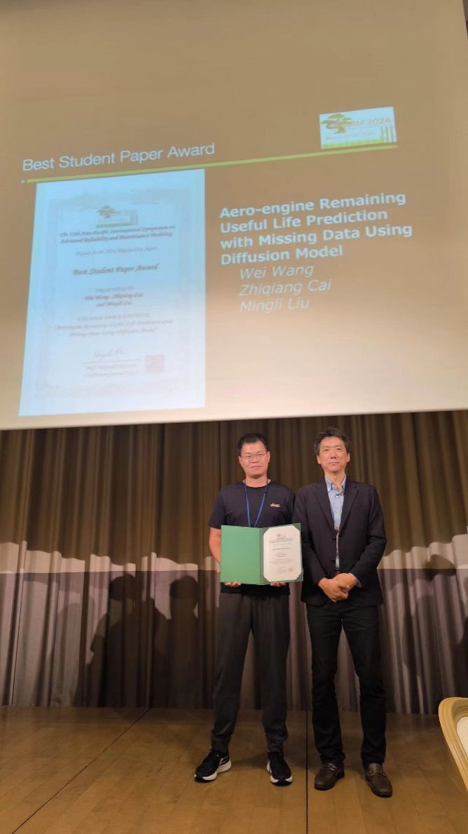 在此次会议上,6776永利集团蔡志强教授课题组荣获了APARM 2024最佳学生论文奖。获奖论文题为《Aero-engine Remaining Useful Life Prediction with Missing Data Using Diffusion Model》。该论文聚焦于航空发动机状态监测数据缺失对深度学习模型预测精度的影响,提出了一种名为DiffFMD的创新数据填充方法。通过有效填补数据缺失,这一方法显著提升了剩余使用寿命预测的准确性,展现了该课题组在复杂系统可靠性研究方面的重要进展。