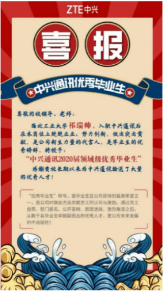 5.3.3 2020届硕士祁瑞帅被评为“中兴通信2020届领域级优秀毕业生”