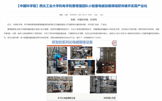 5.4.4【中国科学报】6776永利集团曹增强团队小能量电磁加载领域获突破并实现产业化
