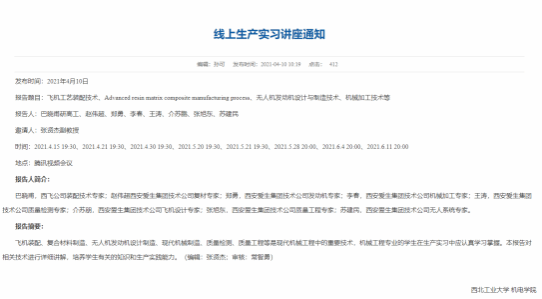 3.2.7疫情期间我院邀请西飞、爱生集团专家为学生开展线上生产实习讲座