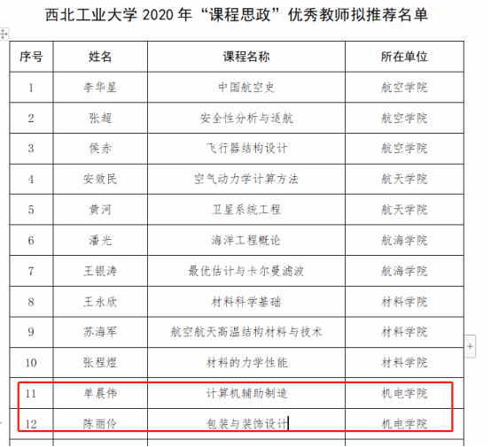 2.7单晨伟、陈丽伶两位老师入选yl6776永利集团2020年“课程思政”优秀教师拟推荐名单