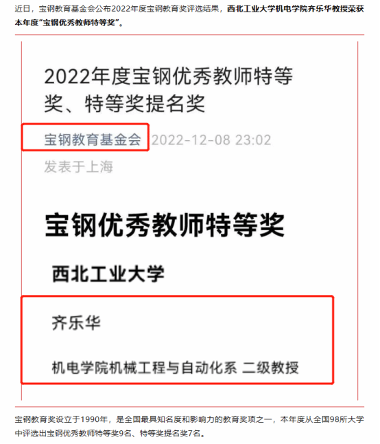 1.2 齐乐华教授荣获宝钢优秀教师特等奖、陕西省教学成果特等奖